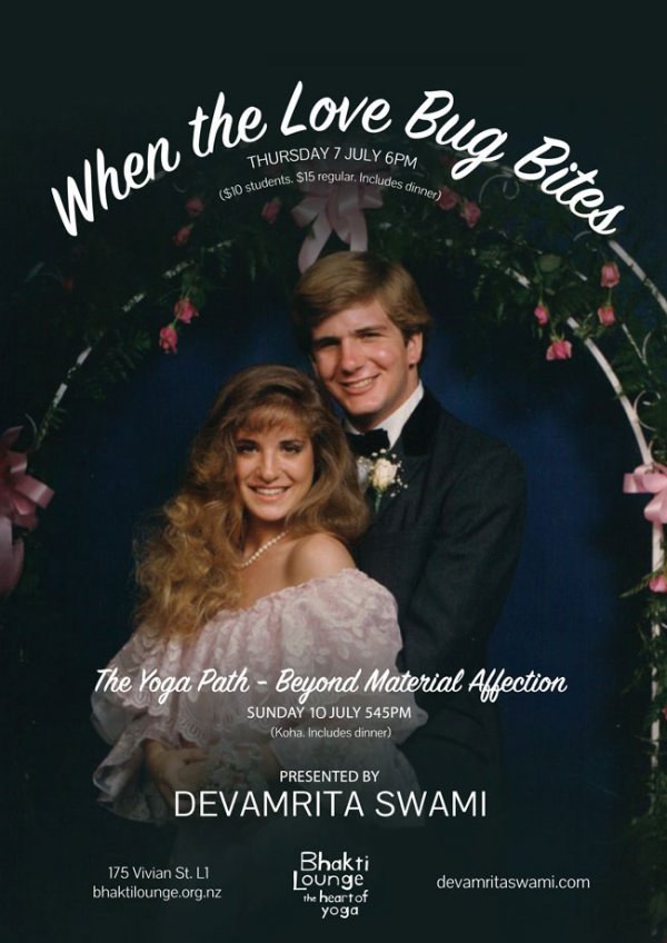 Bhakti Lounge Wellington presents The Yoga Path- Beyond Material Affection by Devamrita Swami. Find out if "the love bug" bites monks too. Bhakti Lounge is proud to present our guest speaker Devamrita Swami, a travelling monk, writer and educator of ancient bhakti yoga wisdom. Presenting the topic of love beyond material affection, "When the Love […]