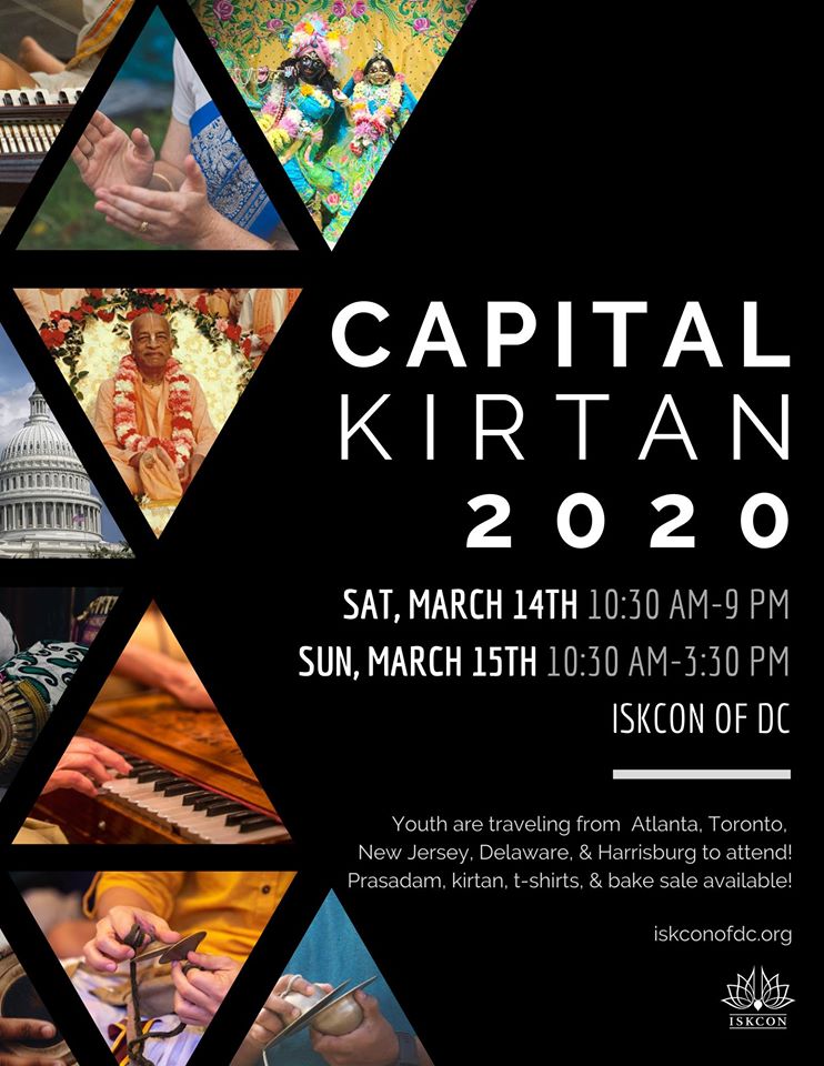 Capital Kirtan is a youth inspired and organized festival near Washington D.C. where devotees are gathering from all over America to chant the holy name! This year is our biggest festival yet! We have confirmed devotees traveling from Baltimore, Delaware, Harrisburg, North Carolina, New Vrindavan, Alachua, Toronto, New Jersey, New Orleans, and Gita Nagari. Please […]